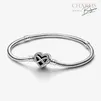 Представлявайки вечната любов, която обединява семейството, гривната Pandora Moments Sparkling Infinity Heart Clasp Snake Chain Bracelet е значим подарък за тези, които са най-важни за вас. Ажурната закопчалка със сърце включва камъни по ръба и асиметричен символ за безкрайност, който се увива около сърцето. Гърбът на закопчалката е гравиран с посланието „Семейство завинаги и винаги“. Гривната разполага с две нишки (повдигнати разделители за талисман), които я разделят на три части. Оформете го с до 16-18 от любимите си талисмани или висящи талисмани, за да символизирате тези, които обичате, или го подарете на някой близък до сърцето ви. Гривната е тип Пандора.