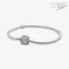 Класическата гривна с талисман Pandora получава бляскаво подобрение с тази искряща паве версия. Изработена от стерлингово сребро, тази елегантна гривна със змийска верига се отличава със закопчалка с бъчва с искрящи кубични циркониеви камъни. Носете го самостоятелно или като изтънчен носач за вашата лична колекция от щипки и талисмани Moments. Гривната е тип Пандора.