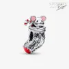 Уловете магията на пробуждането в коледната утрин с този празничен талисман с мишле и чорап. Този ръчно завършен сребърен талисман представлява коледен чорап с реалистични плетени детайли и сладко мишле и захарна пръчица, които се подават отгоре. Мишлето е изобразено с живи детайли като очарователно мустаче и лапички и украса от розов емайл във вътрешната част на ушите. Червеният емайл по захарната пръчица и червеният и зелен емайл по чорапчето носят допълнително празнично настроение. Идеалният подарък изненада, който получателят да разопакова заедно с любимите хора пред уютна камина.