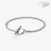 Добавете специален щрих към колекцията на любимия човек с гривната Pandora Moments Heart T-Bar Snake Chain. Ръчно завършена в стерлингово сребро, тази част е вдъхновена от нашата класическа гривна Pandora Moments T-bar със змийска верига. Стилът включва диск във формата на сърце с отворен кръг от едната страна, през който преминава T-образната лента, за да се отваря и затваря, докато обратната страна е полирана. Проектиран да бъде оформен с 10-13 талисмани, включващи уникално послание за искрен завършек. Гривната е тип Пандора.