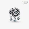 Този ръчно завършен сребърен талисман висулка с ледена снежинка отдава почит на красотата и уникалните творения на природата. Той е украсен с изкусно изсечена снежинка, инкрустиран е с бледосин изкуствен кристал от двете страни, а отстрани има изсечени в метала детайли, напомнящи снежинки. Висулката от три по-малки снежинки придава на талисмана раздвиженост, напомняща за снежинките, които танцуват в заскрежения въздух – всяка висулка се отличава по нещо от другите и съдържа изкуствен кристал. Носете го върху любимото си зимно бижу, за да ви напомня колко ценно е уникалното у всеки.